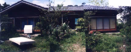 一宮町はサーフィンのメッカとしても知られています。その大平洋の荒波が打ち寄せる九十九里の海岸まで900メートル。いつも遠くに波の音が聞こえます。家の中にカニもいました。明治期に開かれた別荘地の一角で、豊かな緑に囲まれ、近くには一面の田んぼがひろがっています。夜は虫の声に包まれて眠り、朝は鳥のさえずりで目覚める。フェニックスやシュロ、バナナの木が茂り、朝靄に煙るその景色はまさにバリ島を思わせます。サギの営巣地となっているジャングルの様な隣の茂みからは「ギャーギャー」という恐ろしい声が聞こえ、大きなクモやゴキブリ、ムカデが這い回り、「南方」の雰囲気を更にかもし出してくれています。