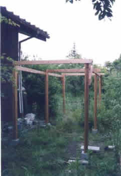 | ○写真2+3:竹を組んだひょうたん棚 |