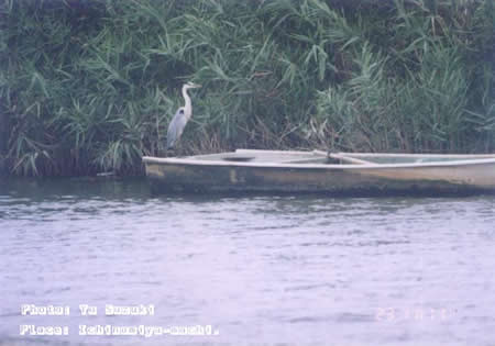 | ○写真8:アオサギ : ボートの上でボーっとしている |