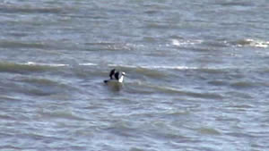 先に飛び立った♂の方は、しばらくは双眼鏡でその姿が確認できたが、いつのまにか見えなくなっていた。気掛かりなのはフクちゃんだ。まだ、すくそこでプカプカと浮いている。