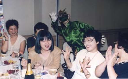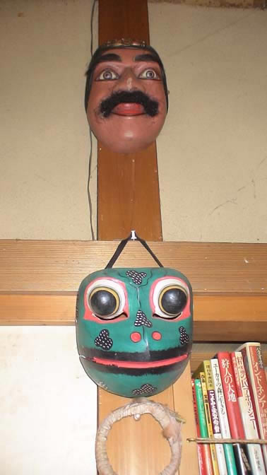 バリ島はなんせカエルものが多い。美しい棚田でも分るように田んぼだらけなので、必然的にカエルも多いのだ。だからバリの夜はうるさいくらいのカエルの大合唱に包まれています。(お聞きになりたい方はウチのCDで聞けます=>コチラ) アニミズムの要素を色濃く残すバリ・ヒンズーでは、カエルもきっと田んぼの守神なのでしょう。カエルを題材にした芸能もある。僕の部屋にはフロッグ・ダンス用のお面(写真4)があります。カエルのお面は実際に僕らのライブで、カエル踊りの時に使用しています。踊子さんが被ってお客さんと踊るのです。(写真5)