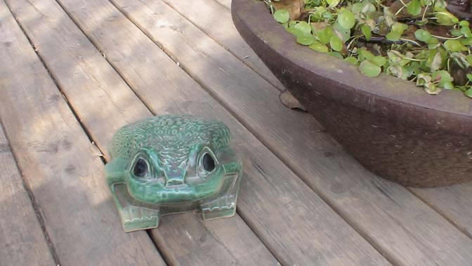 そして焼き物のカエルくん。ご近所の陶芸家の加藤さんがわざわざ作って持って来てくれました(写真10)。