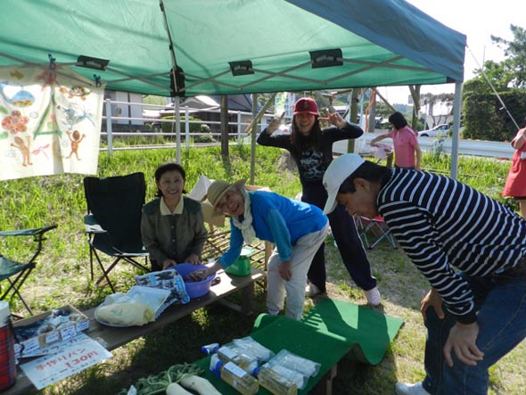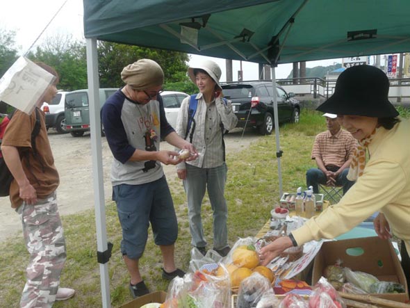これまでの出店者は、地元一宮町のファーマーズで、菜鮮箱、大橋さん、農業組合法人の東園組合、やおや しまざきさんなど。また、とれたてハマグリ、ミネラルたっぷりの手作り塩やにがり、などもあります。さらには、スマイルの木(手作りパン各種、クッキー、酒粕クッキー)、喫茶いこい(クッキー)、石野さん(花苗や野菜苗)もあるんです。そうそう、日によって、出店者や商品が変わる場合があります。