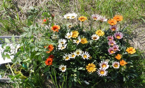 葉もの野菜、トマト(今はハウス)、きゅうり、ネギ、じゃがいも、そらまめ、グリーンピース、おかひじき、玉ねぎ、なす、大根、ニンニク、平飼いニワトリ卵とか。