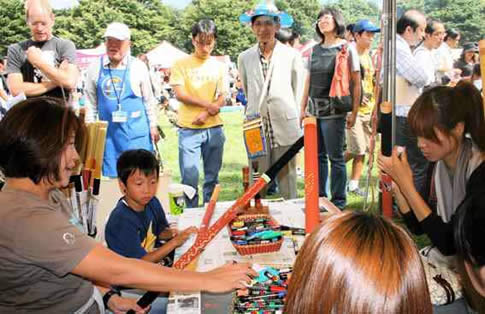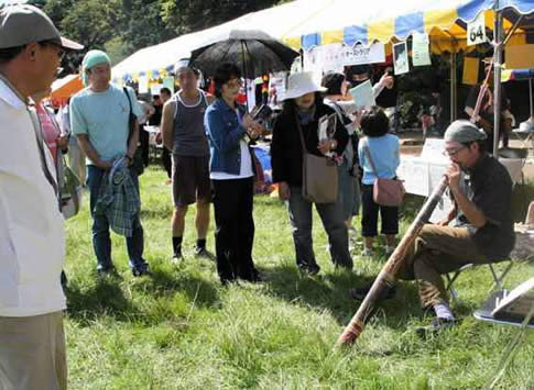多くの来場者が訪れる中、オセアニアのコーナーでJADAによる「ディジュリドゥ・デモ演奏と公開ワークショップ」を行いました。