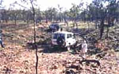 ユーカリの潅木が生えるブッシュをTOYOTAで這うように走る。ここではTOYOTAが車の代名詞だ。地面は赤く錆び付き焼けこげている。道は無い。ゴツゴツとした岩と潅木、アリ塚を避けながらガタゴトと進んでいく。時々水をたたえたギャップを超えなくてはならない。