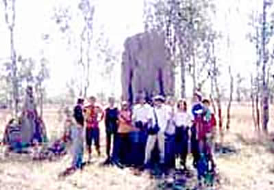 キャサリンからさらに南東へ約150km。もうもうと赤い砂塵を巻き上げながら洗濯板のようなダート・ロードを走ること2時間。尻が痛い。雨季にはこの道も水の下だ。 巨大なアリ塚が所々に点在する。それはまるで忘れ去られた何かの記念碑か、墓標のようでもある。